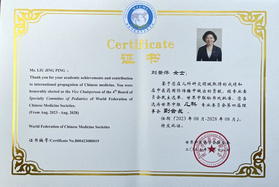 z6尊龙药业集团党委书记、董事长刘景萍当选世界中医药学会联合会儿科专业委员会第四届理事会副会长